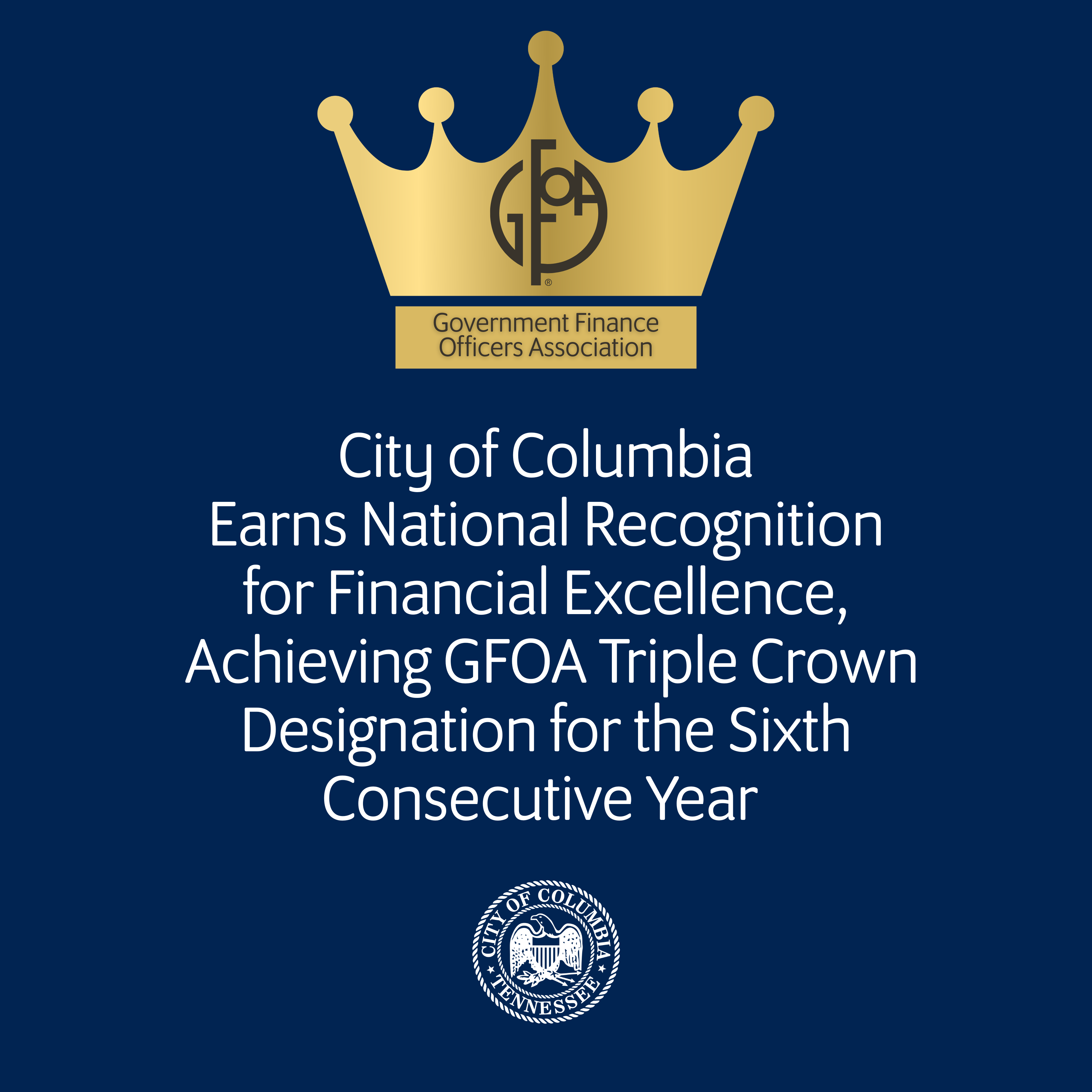 The City of Columbia has once again been recognized for excellence in public finance, earning the Government Finance Officers Association’s (GFOA) prestigious Triple Crown designation for the sixth consecutive year.